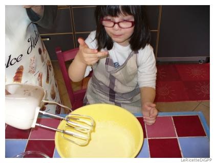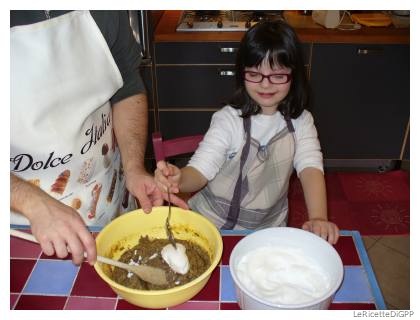 Una volta pronti gli albumi montati, dobbiamo incorporarli all'impasto precedentemente preparato, un poco alla volta, mescolando delicatamente con un cucchiaio di legno dall'alto al basso, per evitare che si smontino: