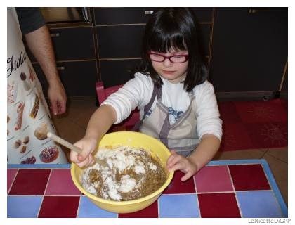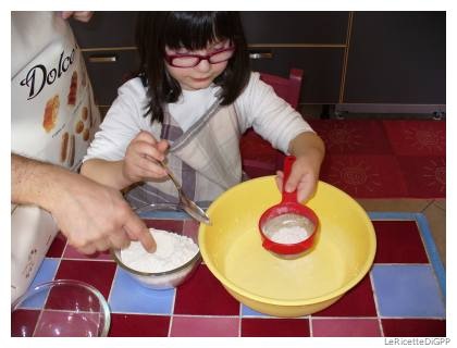 Ora possiamo aggiungere la farina rimanente, la vanillina e il lievito: